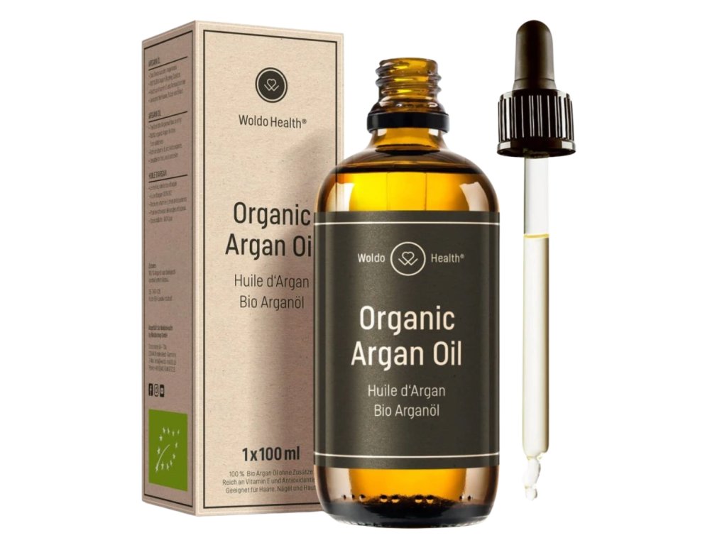 WoldoHealth arganový olej se získává z nepražených pecek argánie trnité původem z Maroka. Obsahuje až 80 % esenciálních mastných kyselin, antioxidanty a vitamíny A, E a F. Díky tomuto složení podporuje regeneraci buněk, pomáhá udržovat pružnost pokožky a regulovat tvorbu kožního mazu. Olej se rychle vstřebává a nezanechává mastný film.