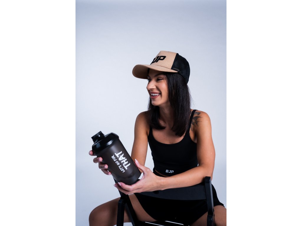 Černý shaker BJP je víc než jen praktická pomůcka – je to statement. S nápisem LET’S GO FOR THAT ti připomene, proč jsi začal. Ideální na protein, pre-workout nebo BCAA. Lehký, pevný a stylový. Sedí perfektně do ruky i do tašky, a díky preciznímu uzávěru se nemusíš bát protékání. Spodní část je mírně zúžená pro snadné uchopení. Shaker má matný efekt a víčko s logem BJP, které dotváří celkový design. Ideální volba pro každého, kdo to myslí vážně.