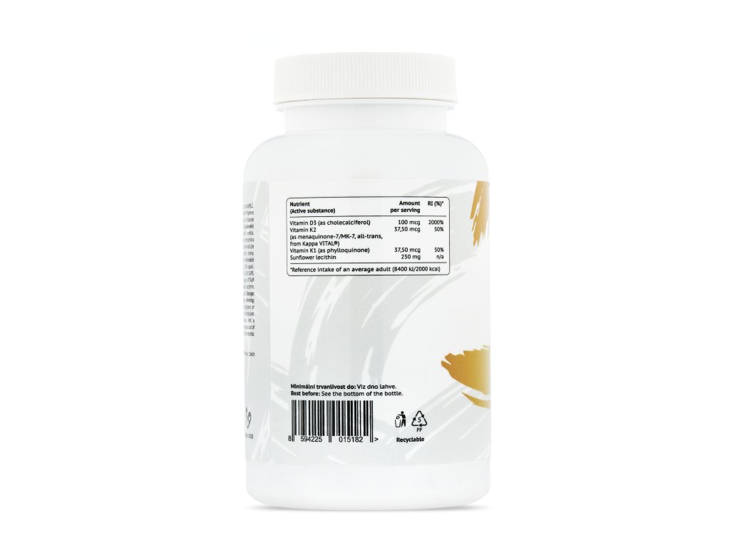 - Vitamin K1 (fylochinon): Podporuje srážlivost krve a doplňuje K2 pro komplexní efekt.