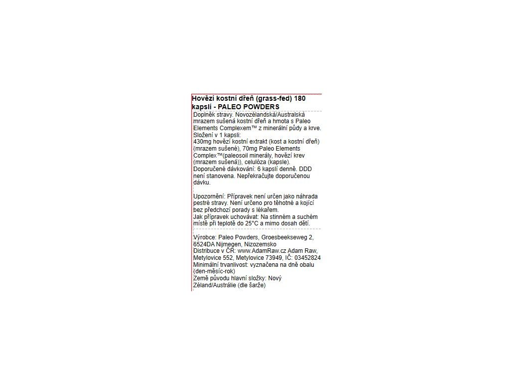 Freeze-dried beef bone marrow and mass, Paleo Elements Complex™ (mineral soil, blood). 180 capsules × 500 mg. No pesticides, fillers, hormones or GMOs.