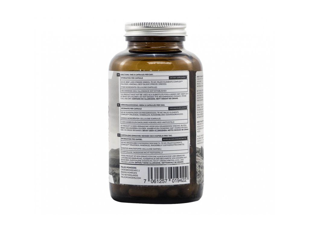 Freeze-dried beef liver, Paleo Elements Complex™ (mineral soil, blood). 180 capsules. No pesticides, fillers, hormones or GMOs.