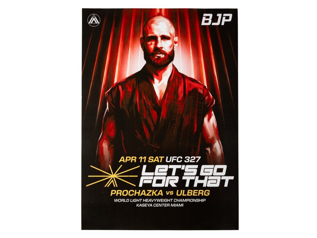 Some moments deserve a place on your wall. The limited edition Let's go for HUNT poster was created for the UFC 327 title fight – Procházka vs. Ulberg – for the Light Heavyweight World Championship, April 11, 2026 at Kaseya Center in Miami. The stylized artistic illustration of Jiří Procházka in a traditional kimono captures the focused energy of a hunter moments before stepping into the cage.