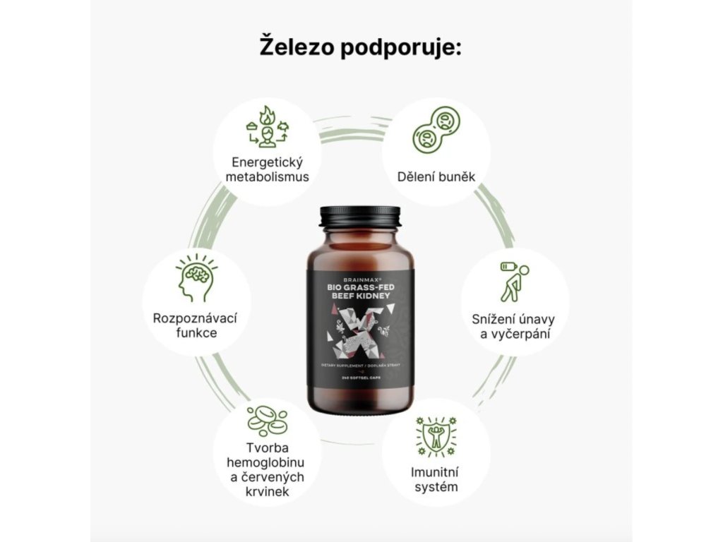 Heme iron is a form of iron found in animal products, especially red meat. The heme form is much more bioavailable and better absorbed. Contributes to normal energy metabolism and normal cognitive functions , which is important for your physical and mental performance. Iron too supports normal formation of red blood cells and hemoglobin , which enables efficient oxygen transport in the body . It also contributes to normal function of the immune system, reduces fatigue and exhaustion , and participates in the process of cell division , which is crucial for tissue growth and regeneration.