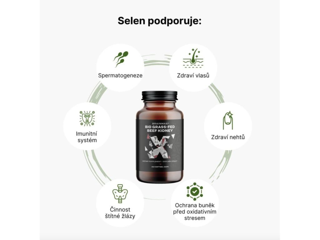 EXP 1/26 BrainMax Grass-Fed Beef kidney, hovězí ledviny, BIO, 240 kapslí