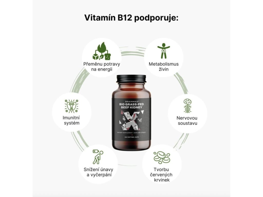 Vitamin B12 helps convert food into energy in the body. It plays a key role in the metabolism of carbohydrates, fats and proteins. It also contributes to normal functioning of the nervous system, the formation of red blood cells and contributes to the reduction of tiredness and fatigue . Vitamin B12 is important for normal functioning of the immune system.