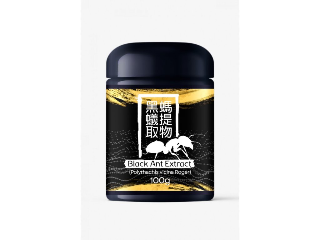 Black ant extract at a strength of 50:1 is the most concentrated, strongest and most expensive extract of this type in the world. 50 times the source material was needed to produce the final product. For 100 g of this valuable and rare extract, 5 kg of large wild mountain ants Polyrhachis vicina Roger from Di Tao, collected at high altitudes in the Chinese mountains, were used.