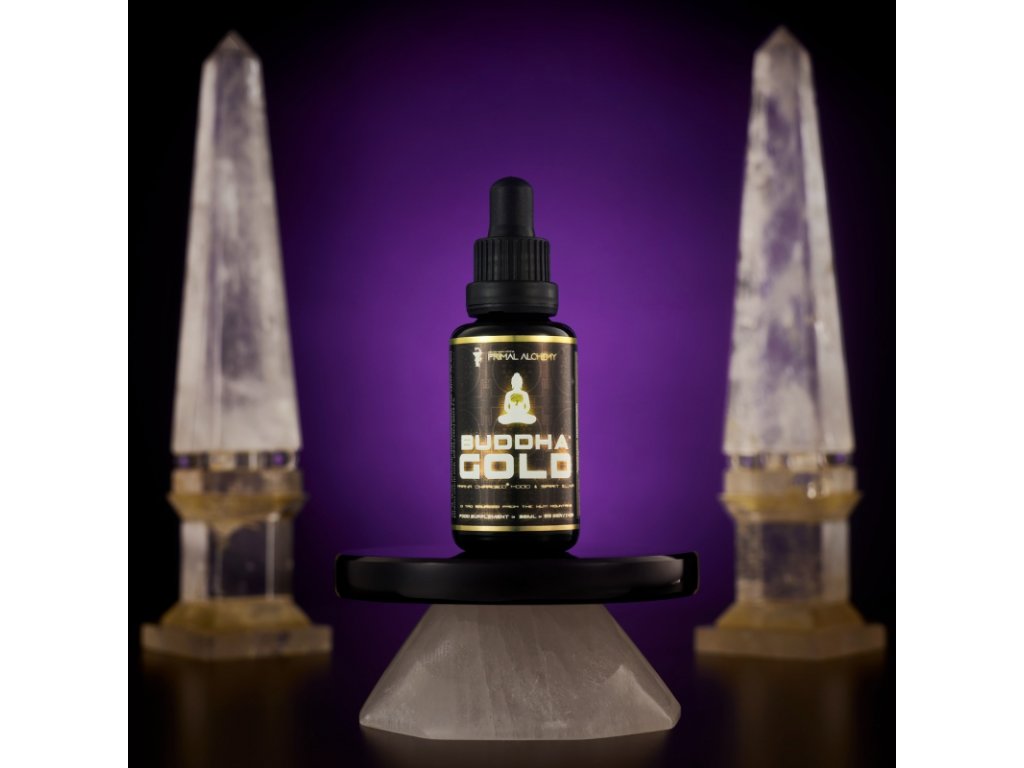 Buddha Gold (Buddhovo zlato) je silný přírodní elixír spórového oleje extrahovaného z nejuznávanější tonické a adaptogenní houby světa - Duanwood Reishi. Di Tao (viz níže) sklízené z mystických hor Wuyi v Číně obsahuje Buddha Gold okolo 30% triterpenů! Jde také o jediný Reishi spórový olej na světě, který je navíc pránicky nabitý nejmodernějším generátorem kvantové orgonové energie na 432 Hz (viz níže) a uložen v prémiovém fialovém mironovém skle.
