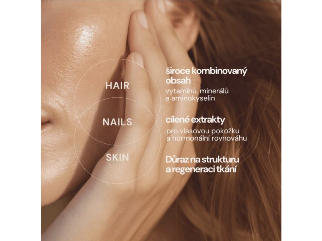 Díky extraktu z přesličky a kopřivy, které jsou bohaté na přírodní křemík, komplex posiluje strukturu vlasů a nehtů. Výjimečnou složkou je extrakt Saw Palmetto, který je vyhledáván pro svou schopnost udržovat hormonální rovnováhu a zdraví vlasové pokožky. Minerály jako zinek, měď a selen jsou zastoupeny v organických vazbách pro maximální biodostupnost. Výsledkem je komplexní péče, která chrání buňky před oxidativním stresem a navrací pokožce jas, vlasům lesk a nehtům jejich pevnost.