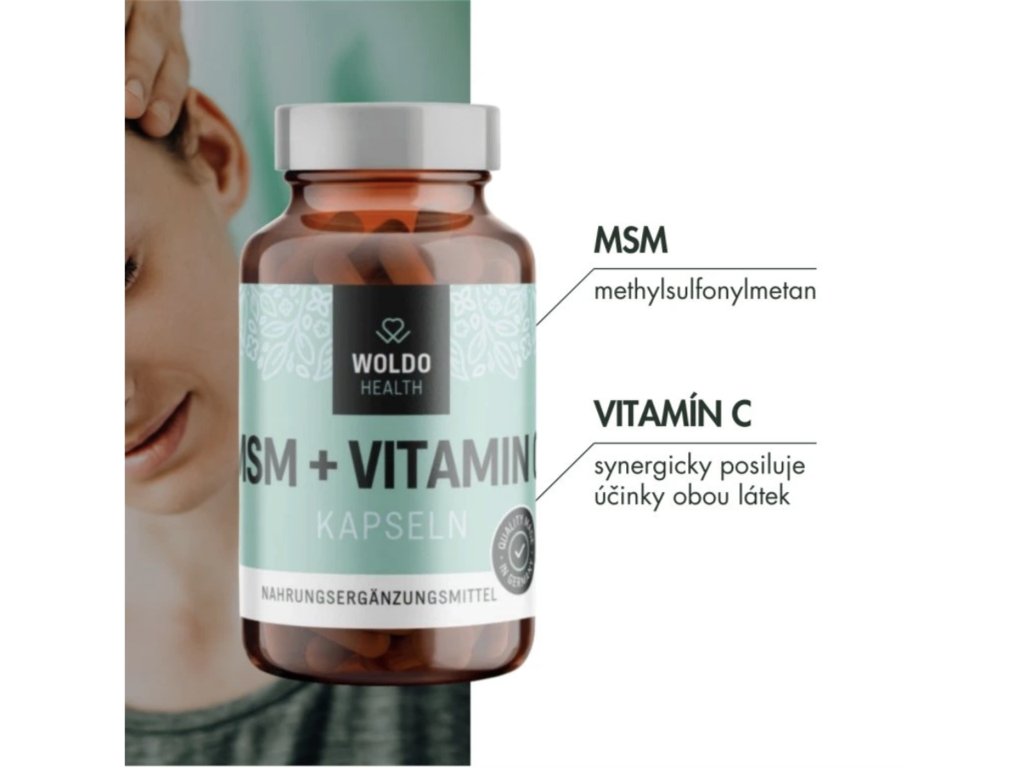 Woldo Health MSM + Vitamín C – Synergická péče o vaše klouby a pojivové tkáně Objevte sílu čistého methylsulfonylmetanu (MSM) obohaceného o přírodní vitamín C, který zásadně zvyšuje biologickou dostupnost organické síry v těle. Tato kombinace je navržena pro efektivní podporu tvorby kolagenu, kloubních tekutin a vazů. MSM působí jako klíčový stavební prvek, který pomáhá udržovat elasticitu kloubů, snižovat citlivost na bolest a urychlovat regeneraci po fyzické zátěži či sportovním výkonu.