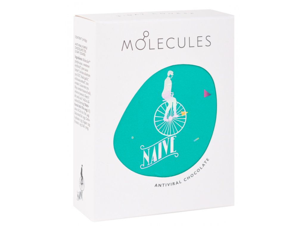 Pôvodná Molecules™ bioaktívna fialová čokoláda Naive vo variante ANTIVIRAL, doplnená o receptúru 4 silných prírodných zložiek: