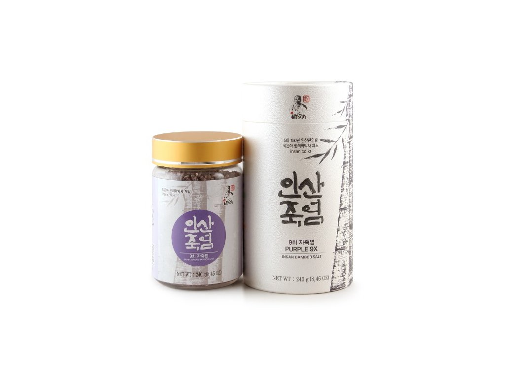 Túto lekársku soľ, ktorá bola dlho vyrábaná a uchovávaná iba pre terapie v Insanovej lekárskej rodine, zrodila 3. generácia Dr. Kim Il-hoona, ktorý bol v Kórei nazývaný božským lekárom a hrdinom storočia. 9-násobná bambusová soľ sa vyrába 9-krát opakovaným pečením, tavením a vytvrdzovaním pomocou ohňa z borovicového dreva potom, čo sa do bambusových trubíc vloží kórejský morský soľný kvet zo Západného mora. Táto vysoko-funkčná fialová soľ slúži na terapeutické účely a samozrejme teda nie je primárne určená na ochutenie a solenie pokrmov a do kuchyne a aj keď je možné ju takto používať, je potrebné počítať so silným sírnym arómou a vysoko minerálnou chuťou, na ktorú si je potrebné zvyknúť. Vzhľadom na vlastnosti a účel použitia však nejde o žiadnu serióznu prekážku.