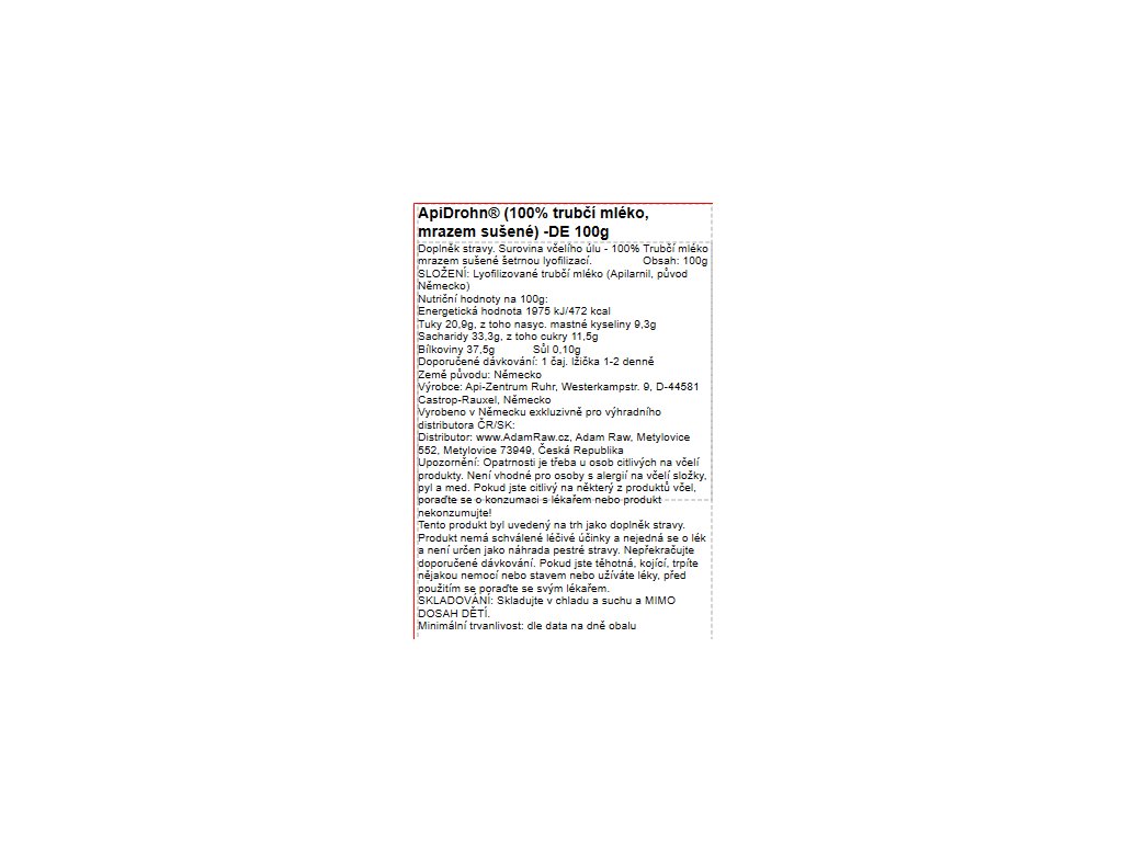 ZLOŽENIE: Lyofilizované trúdie mlieko (Apilarnil, pôvod Nemecko)