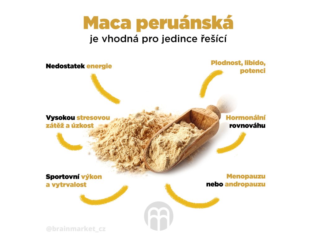 Maca je jedným z najsilnejších adaptogénov. Zvyšuje odolnosť voči stresu a zmierňuje úzkosť.