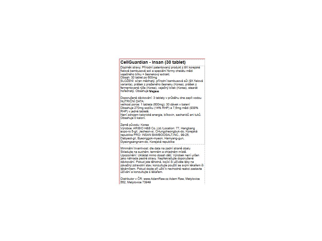 Cellguardian je doplnok stravy, zložený z vaječného bielka-chalcanthitu, 9-krát pečenej fialovej bambusovej soli a cesnakového extraktu.