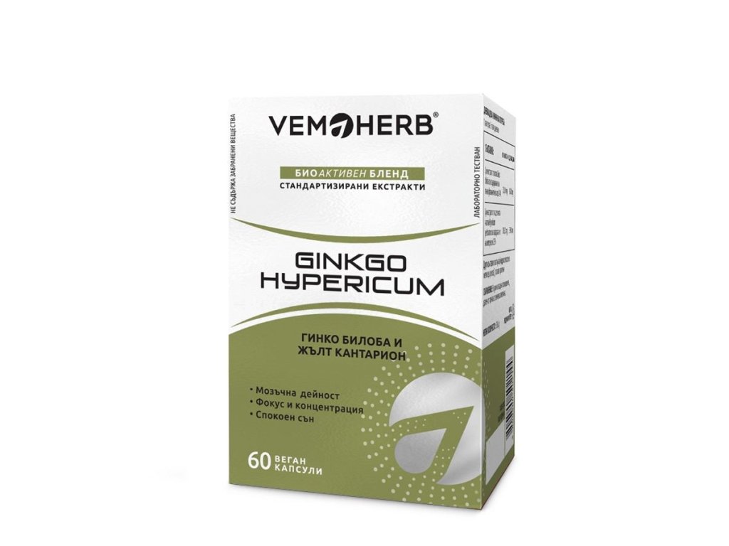 Zloženie v 1 vegánskej kapsule: suchý extrakt z listov Ginkgo biloba, suchý extrakt z nadzemnej časti Hypericum perforatum, obal kapsule (hydroxypropylmetylcelulóza), hrachový proteín.