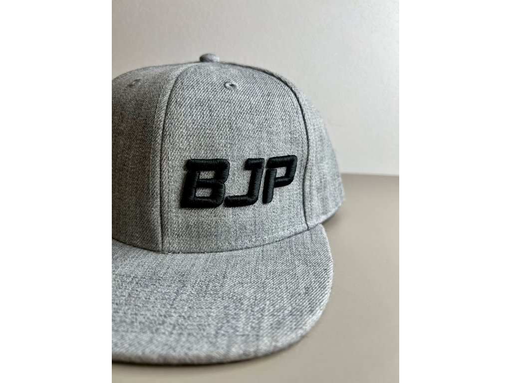 Populární druh pokrývky hlavy s rovným kšiltem je oblíbený zejména pro možnost regulovat šířku čepice páskem na zadní straně, můžeš si ji tak skvěle přizpůsobit k hlavě. Šedá kšiltovka s černým našitým logem BJP, které je v kontrastu s barvou kšiltovky, je skvělým doplňkem k jakémukoliv oblečení.