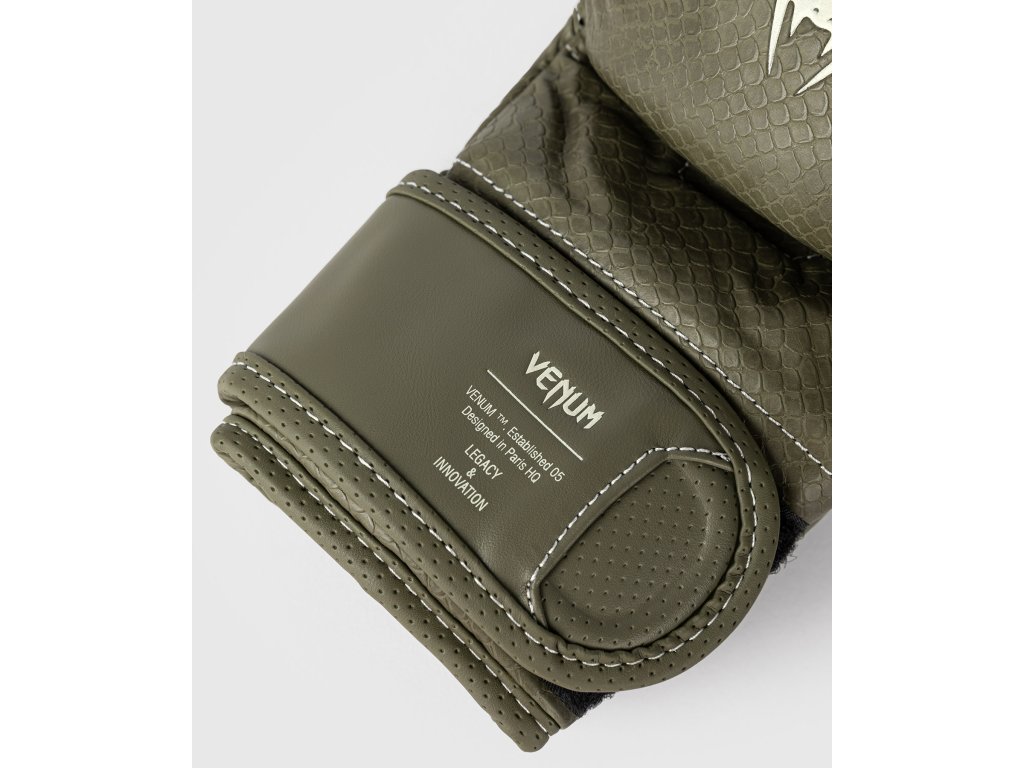 Neoprenová vnitřní část zajišťuje rychlé odpařování vlhkosti a pevný úchop při grapplingu. Mikroperforace napomáhají ventilaci a celkovému pohodlí během tréninku. Jedinečný design s béžovým prošíváním a reliéfními „scales“ detaily dává rukavicím moderní a agresivní vzhled, který jasně vyjadřuje sílu značky Venum.