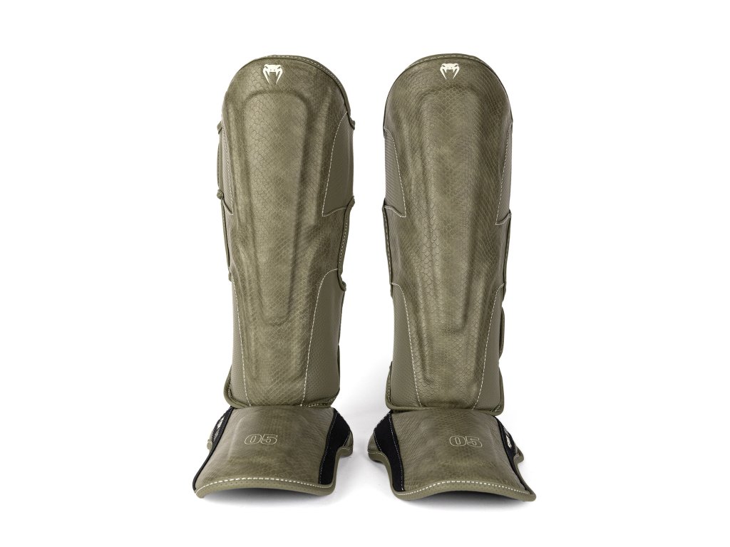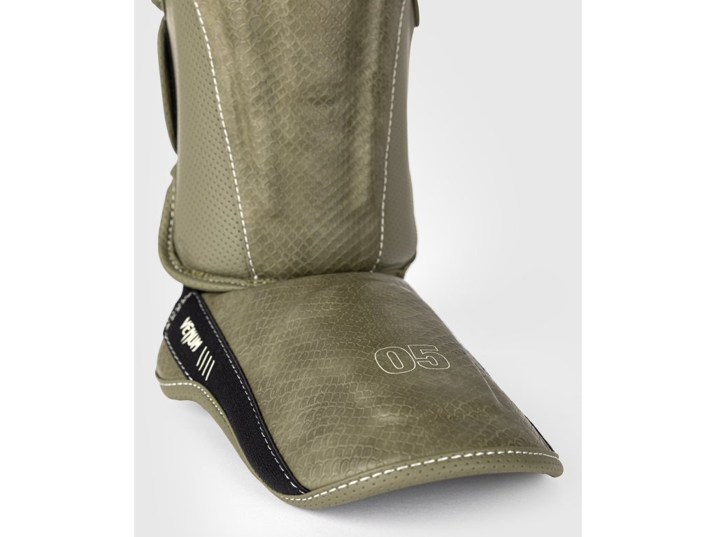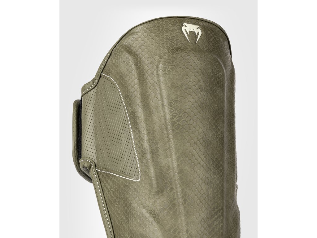 Bežové prošívání podtrhuje anatomickou konstrukci a dodává jemný kontrast, zatímco reliéfní „scales“ detaily na povrchu symbolizují sílu a rychlost, které charakterizují značku Venum.